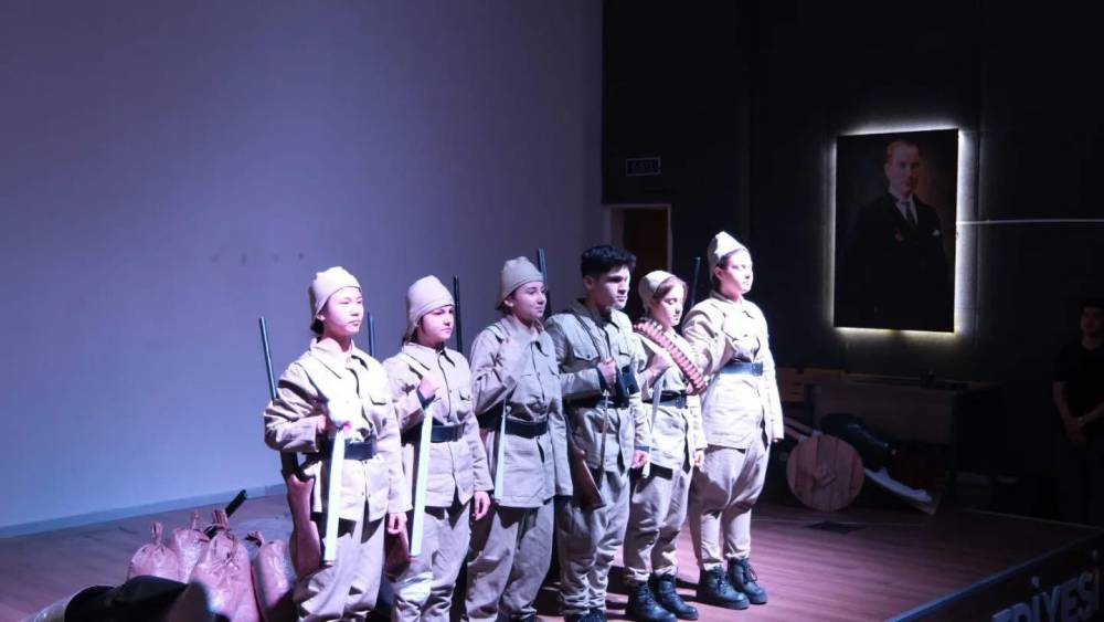 Manisa’nın Sarıgöl ilçesinde, İstiklal Marşı’nın kabulünün 105. yılı ve Mehmet Akif Ersoy’u Anma Günü dolayısıyla düzenlenen programda öğrencilerin sahnelediği "Korkma, Gençliğin Ruhu Burada" adlı tiyatro oyunu izleyenlere duygu dolu anlar yaşattı.