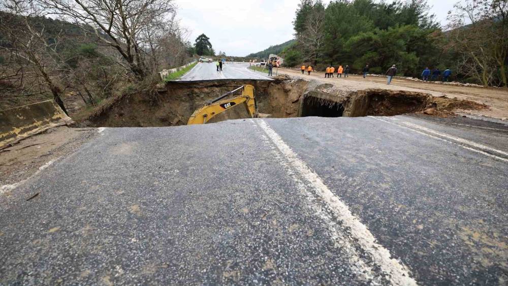 İzmir genelinde yoğun yağış sonrası Selçuk ilçesi ile Aydın’a bağlı Ortaklar arasındaki karayolunda çökme meydana geldi. Aydın sınırına 500 metre kala yol tamamen ulaşıma kapanırken, trafik akışı alternatif güzergâhlara yönlendiriliyor.İzmir Selçuk - Ortaklar yolu üzerinde, Aydın il sınırına yaklaşık 500 metre mesafede karayolunca derin bir çökme meydana geldi. Kuvvetli yağış sonrası olulan çökme sonrası bölgeye ekipler sevk edildi. Yol çevresinde güvenlik önlemleri alındı. Bu arada trafik akışı alternatif güzergâhlara yönlendiriliyor. Çökmenin meydana geldiği alanda onarım ve teknik incelemenin yapılması bekleniyor.Alternatif güzergahSelçuk’tan Ortaklar ve Aydın yönüne giden araçlar, Çamlık Kavşağı üzerinden Kuşadası yoluna yönlendiriliyor. Ortaklar’dan Selçuk istikametine gelen araçlar ise Aydın - İzmir Otoyolu’na sevk ediliyor.Yetkililer, Selçuk - Ortaklar yolunu kullanacak sürücülerin alternatif güzergâhları tercih etmeleri ve trafik işaret ile yönlendirmelerine dikkat etmeleri gerektiğini bildirdi.