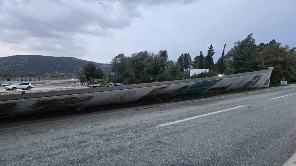 İzmir’in Selçuk ilçesinde fırtına nedeniyle büyük reklam panoları ve demir konstrüksiyonlar anayola devrildi. O esnada yoldan geçen herhangi bir aracın bulunmaması muhtemel bir kazanın önüne geçti.