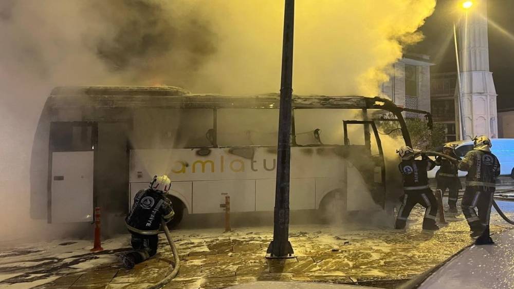 Denizli’de Organize Sanayi Bölgesindeki bir firmanın işçilerini taşaıyan servis şoförünün dikkati faciayı önledi. Dumanları fark ederek aracı yol kenarına çeken şoförün işçileri tahliyesinin hemen ardından servis alev topuna döndü.
