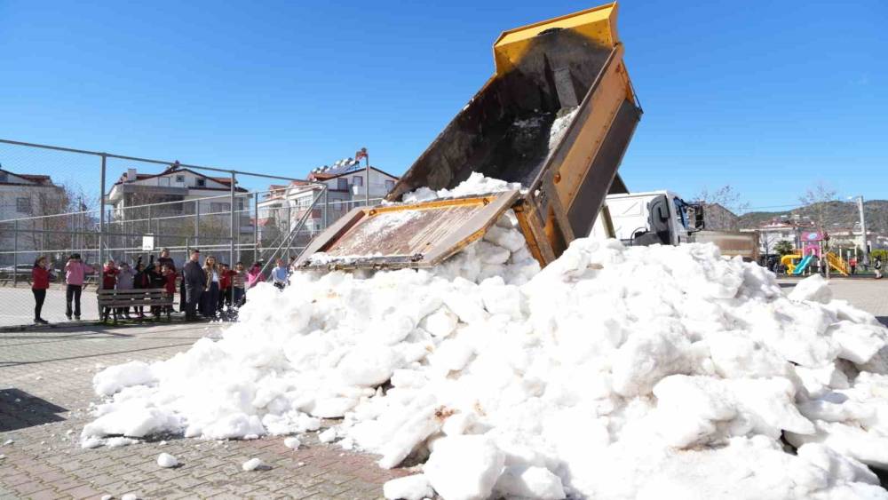 Muğla’nın Seydikemer ilçesinde Belediye Başkanı B.Önder Akdenizli, küçük çocuğun kar oynama isteğini yerine getirdi.
