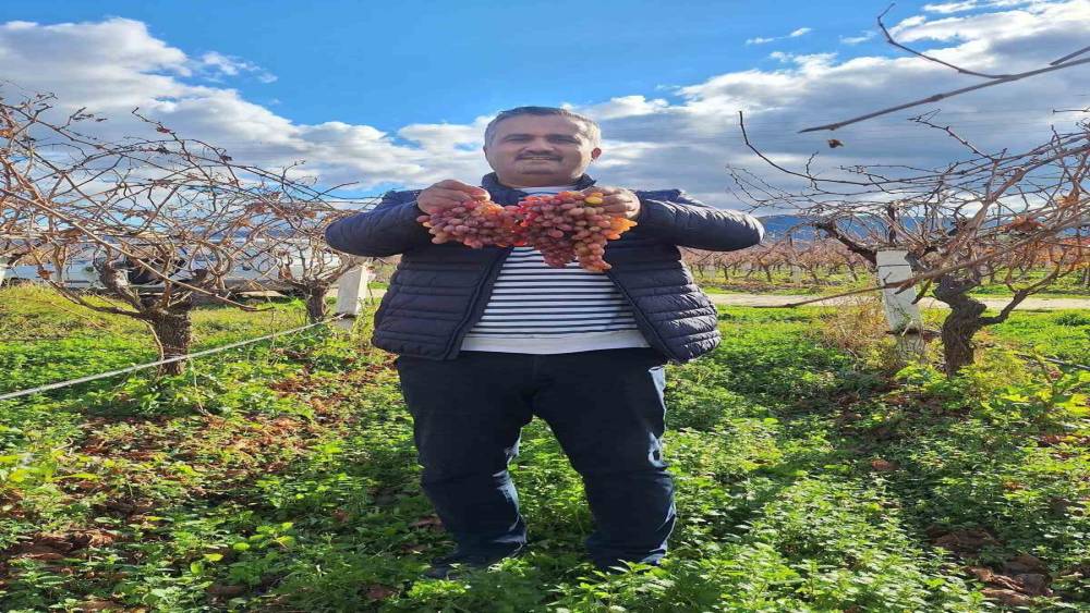 Crimson üzümü yetiştiren üretici Serhat Akkaya ise üzüm sezonunun sona erdiğini belirterek, "Bağımdaki Crimson üzümlerinden ayırdığım asmalardan topladığım üzümleri poşetleyerek konu komşuma ve arkadaşlarıma hediye ediyorum. Kış mevsiminde bile asmadan taze üzüm toplamak mümkün" diye konuştu.
