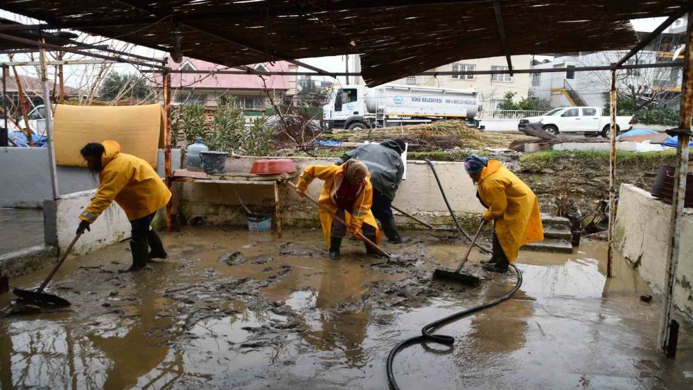 Söke Belediyesi ekipleri selin yaralarını sarmak için sahada
