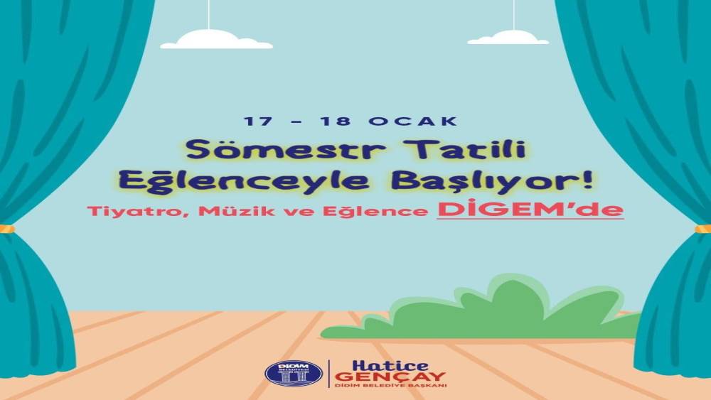 Etkinlikler kapsamında 17 Ocak Cumartesi günü DİGEM’de saat 13.30’da Bubble Show, 15.00’te ise Didim Belediyesi Tiyatro Topluluğu tarafından ’Benim Güzel Pabuçlarım’ oyunu sahnelenecek. 18 Ocak Pazar günü ise saat 13.30’da Animasyon Show, 15.00’te Tiyatro Topluluğu tarafından yeniden ’Benim Güzel Pabuçlarım’ oyunu izleyicilerle buluşacak. Etkinliğe tüm öğrencileri davet eden Başkan Hatice Gençay, "Çocuklarımızın tatil dönemini hem eğlenerek hem de sanatla iç içe geçirmelerini istiyoruz. Sömestr tatiline güzel bir başlangıç yapmaları için tüm çocuklarımızı ve ailelerini etkinliklerimize bekliyoruz" dedi.