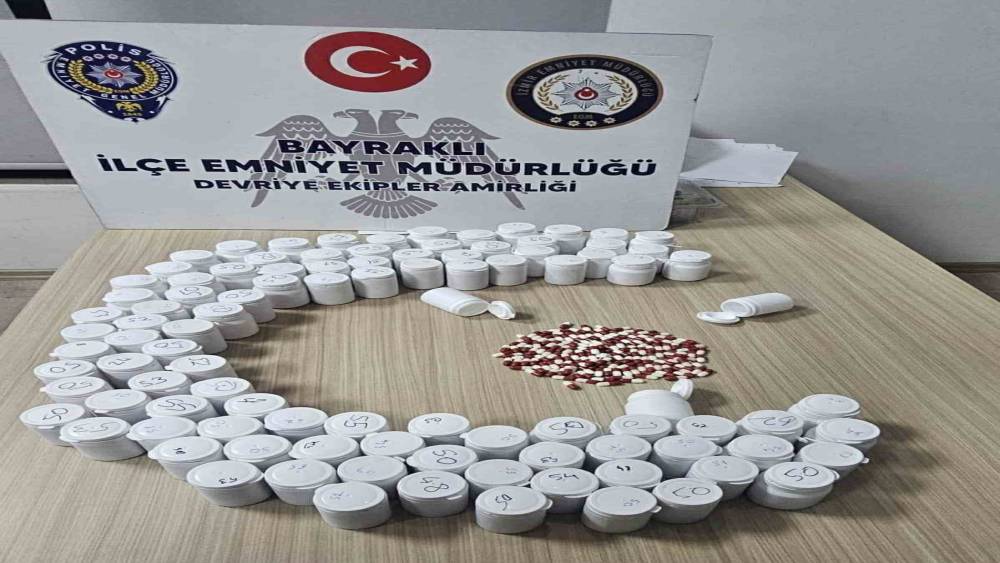 Bayraklı İlçe Emniyet Müdürlüğü Devriye Ekipler Amirliği ekipleri, ilçe genelinde şüpheli şahıslara yönelik yürüttüğü saha çalışmaları kapsamında Ö.A. isimli şahsı durdurdu. Şahsın elindeki torbada yapılan kontrolde, 100 kutu içerisinde toplam 5 bin 138 adet uyuşturucu hap bulundu.