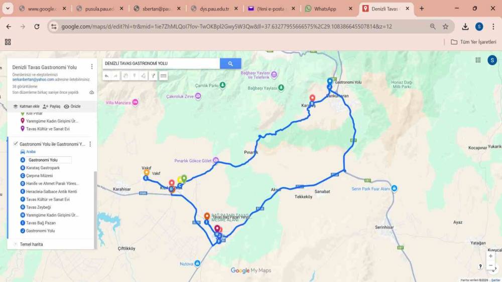 Denizli Tavas Gastronomi Yolunda (Cankurtaran – Karataş - Pınarlık - Kızılcabölük - Vakıf - Tavas) yer alan değerler şöyle yer alıyor; Karataş Mesireliği, Hanife ve Ahmet Paralı Yöresel El Sanatları ve Tekstil Müzesi, Vakıf, Heracleia-Salbace Antik Kenti, Bağ Pazarı, Yarengüme Kadın Girişimi Üretim ve İşletme Kooperatifi, Kültür ve Sanat Evi (Tavas Gastronomi Müzesi: Tel Kırma, Tavas Zeybeği, İçli-Dışlı Tahanlı Pide, Tavas Yanık Koyun Yoğurdu (Bakraç Yoğurt), Tavas Güveci, Kaşık Helva, Tavas Baklavası.