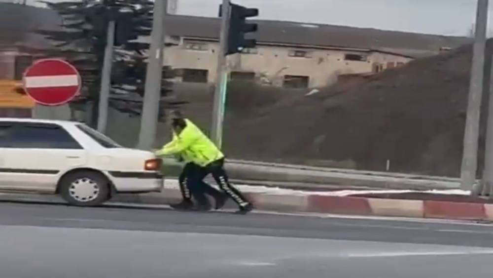 Trafik güvenliğini sağlayan ekipler, araçtan inerek sürücüyle görüştü. Aracın yakıtının bittiğini öğrenen polis memurları, vakit kaybetmeden harekete geçti. Çevredeki vatandaşların takdir dolu bakışları arasında otomobili iten polisler, aracı yaklaşık 100 metre mesafedeki en yakın akaryakıt istasyonuna kadar götürdü.