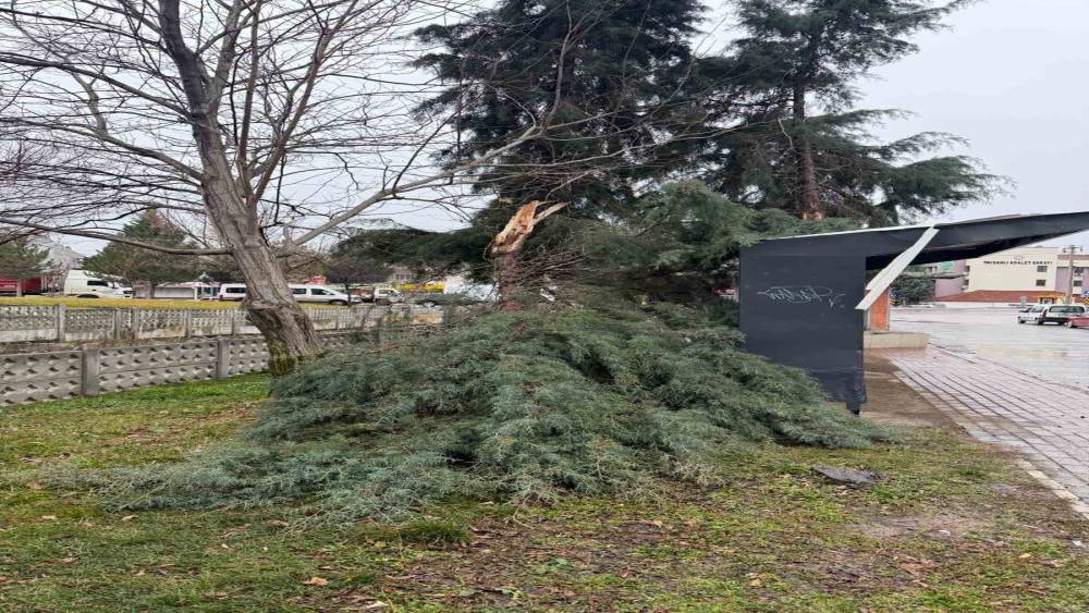 Kütahya’nın Tavşanlı ilçesinde etkili olan şiddetli rüzgar nedeniyle bir ağaç gövdesinden kırılarak yola devrildi. Olay anında ağaç yakınında kimse olmadığı için yaralananan olmadı.Olay, Tavşanlı ilçesi Hanım Çeşme Mahallesi Tuna Sokak üzerinde meydana geldi. Edinilen bilgilere göre, gün boyu etkisini sürdüren şiddetli rüzgara dayanamayan bir ağaç, gövdesinden çatırtılarla kırılarak yola kenarında durak arkasına devrildi. Ağacın devrildiği esnada sokakta kimsenin bulunmaması muhtemel bir yaralanma veya can kaybının önüne geçti. Gürültüyü duyarak dışarı çıkan mahalle sakinleri, durumu Tavşanlı Belediyesi ekiplerine bildirdi.Olay yerine gelen belediye ekipleri, yolu kapatan ağacı motorlu testerelerle parçalara ayırarak kaldırdı. Temizlik çalışmalarının ardından Tuna Sokak yeniden araç ve yaya trafiğine açıldı.Mahalle sakinleri, rüzgarın aniden şiddetlendiğini ve büyük bir gürültüyle ağacın devrildiğini ifade etti.