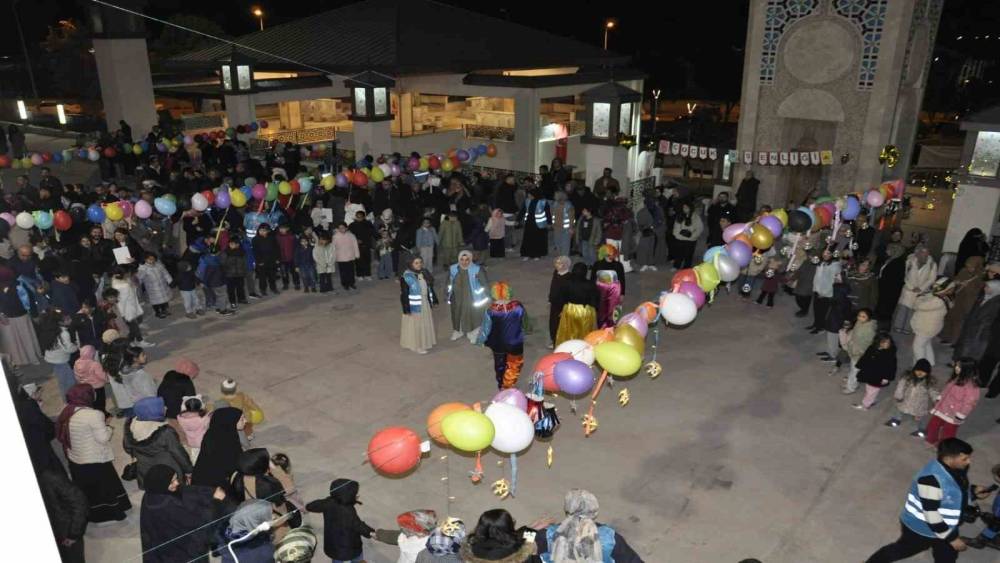 Teravih sonrası cami avlusunda çocuk şenliği düzenlendi