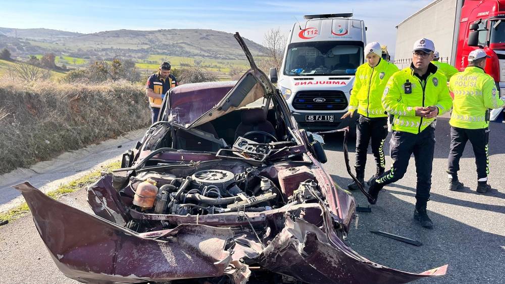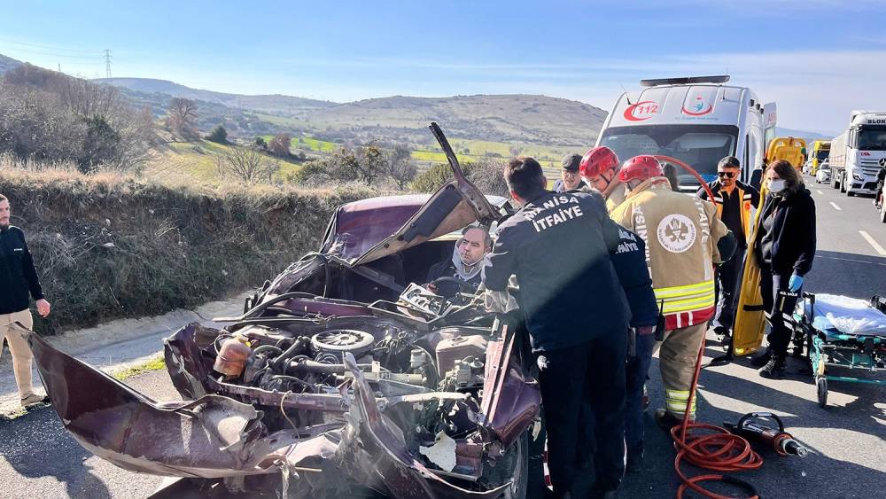 Manisa’nın Kula ilçesinde tıra arkadan çarpan otomobilin hurdaya döndüğü kazada, otomobil sürücüsü yaralandı.Kaza saat, 15.45 sıralarında İzmir-Ankara D300 karayolu Kavacık Rampaları yakınlarında meydana geldi. Edinilen bilgiye göre, İzmir’den Uşak istikametine gitmekte olan Adem K. (42) idaresindeki otomobil, sürücüsünün direksiyon hakimiyetini kaybetmesi sonucu aynı yönde seyir halindeki İbrahim Can M. (26) idaresindeki 06 EHD 781 plakalı tıra arkadan çarptı. Çarpışmanın etkisiyle tıra takılan otomobil yaklaşık 150 metre sürüklenerek durabildi. Otomobil içerisinde sıkışan sürücü, itfaiye ekiplerinin çalışması sonucu kurtarıldı. Kazayı gören vatandaşların 112 Acil Çağrı Merkezi’ne bildirmeleri üzerine olay yerine itfaiye, ambulans, jandarma ve polis ekipleri sevk edildi. Yaralı otomobil sürücüsü olay yerinde yapılan ilk müdahalesinin ardından Kula Devlet Hastanesi’ne kaldırıldı. Yaralı sürücünün hayati tehlikesinin bulunmadığı öğrenildi.Öte yandan, kaza sebebiyle İzmir-Ankara D300 karayolu Uşak istikametine trafik akışı bir süre tek yönden sağlandı.Kaza ile ilgili soruşturma başlatıldı.