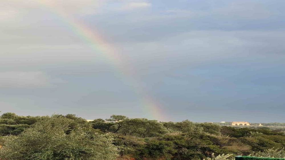 Aydın’ın Efeler ilçesinde etkili olan sağanak yağışın ardından ortaya çıkan gök kuşağı, gökyüzünde görsel şölen oluşturdu.Yağış sonrası güneşin yeniden yüzünü göstermesiyle birlikte, halk arasında Üçgözler olarak bilinen Tralleis Antik Kenti üzerinden yükselen gök kuşağı, kent merkezinin üzerine doğru uzandı. Tarihi antik kent ile modern şehir manzarasının aynı karede buluştuğu anlar, ortaya kartpostallık görüntüler çıkardı. Renklerin gökyüzünde net bir şekilde görüldüğü anlar, kısa sürede ilgi odağı oldu. Gök kuşağını gören vatandaşlar, eşsiz manzarayı cep telefonlarıyla kayda alarak ölümsüzleştirdi.
