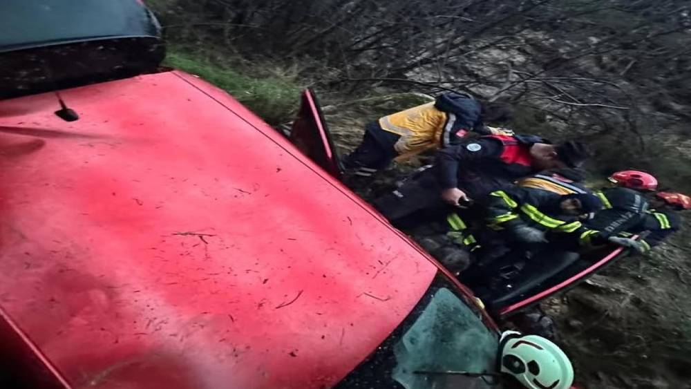 Uçuruma yuvarlanan araçta bulunan 2’si çocuk 5 kişi yaralandı