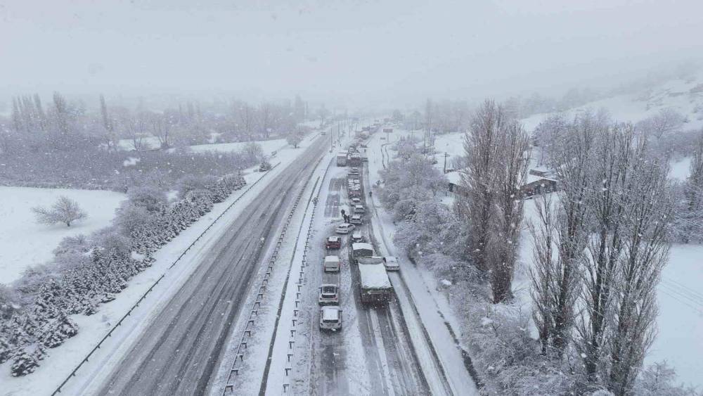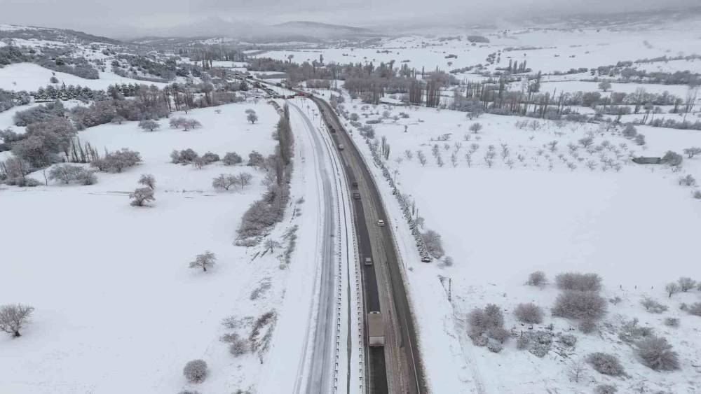 Uşak’ta etkili olan kar yağışı nedeniyle Uşak-Ankara karayolu Dumlupınar Rampaları mevkiinde yol yaklaşık 3 saat boyunca trafiğe kapandı. Rampalarda kar kalınlığı 15 santimetreye ulaşırken, yolda kalan tır ve araçlar nedeniyle kilometrelerce araç kuyruğu oluştu.Hava sıcaklıklarının düşmesiyle birlikte özellikle Uşak’ın yüksek kesimlerinde kar yağışı etkisini artırdı. Yoğun kar yağışı sonrası Dumlupınar Rampaları’nda bazı tır ve araçların yolda kalması nedeniyle ulaşım durma noktasına geldi.Karayolları 25. Şube Şefliği ekipleri ana arterlerde kar küreme ve tuzlama çalışması yürütürken, İl Özel İdaresi ekipleri ise yüksek kesimler ve kırsal bölgelerde çalışmalarını sürdürdü. Uşak İl Emniyet Müdürlüğü’ne bağlı Bölge Trafik Denetleme Şube Müdürlüğü ekipleri de kazalara karşı güvenlik önlemleri aldı.Yaklaşık 3 saat süren çalışmaların ardından yol yeniden trafiğe açılırken, Dumlupınar Rampaları’nda yolda kalan araçlar ve kilometrelerce oluşan trafik kuyruğu dron ile havadan görüntülendi.
