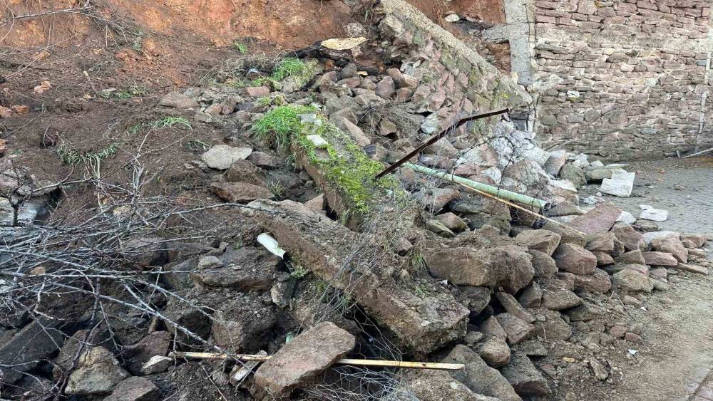 Uşak’ta yağış sonrası istinat duvarı çöktü, toprak kayması yaşandı: 3 ev tahliye edildi