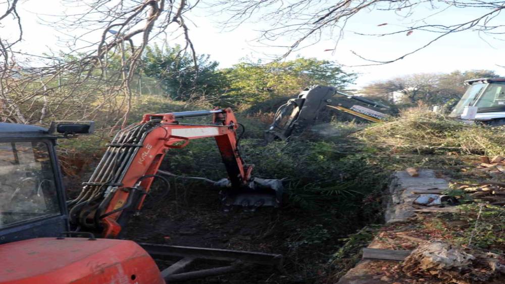 Muğla’da Şubat ayı boyunca devam eden sağanakların yağışların sona ermesi ile yağmur suları ile taşınan molozların kapattığı dere yataklarında temizlik çalışması yürütülüyor.