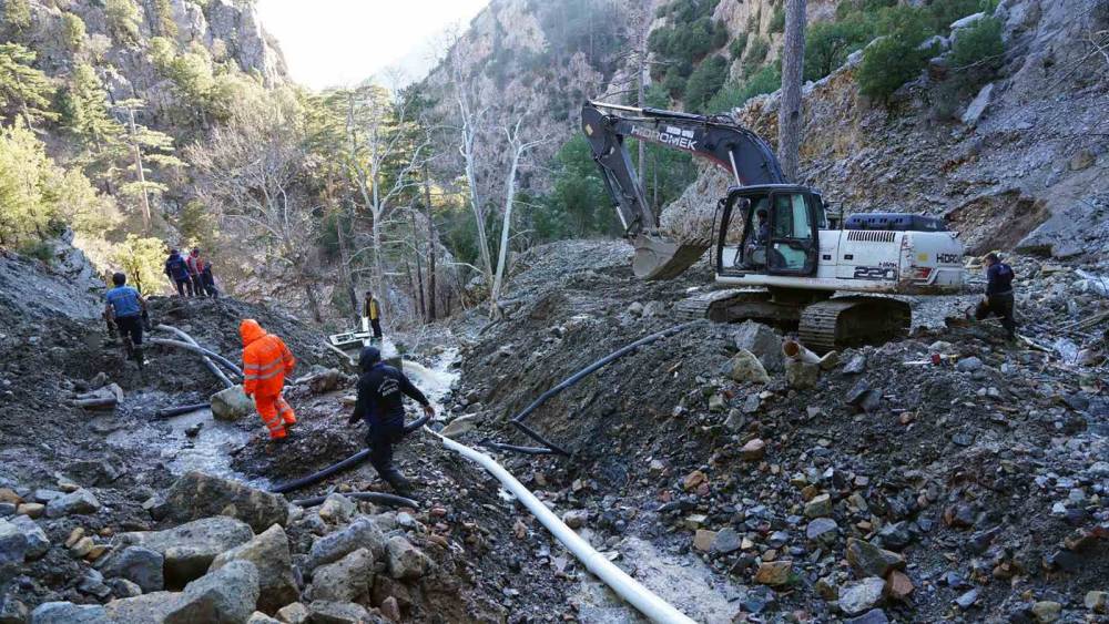 MUSKİ Genel Müdürlüğü, İşletmeler Daire Başkanlığı, Kaynak şefi Özcan Çınar, "Köyceğiz ilçesi Pınar Mahallesi ve Çayhisar Mahallesi’nin belli bölümlerini besleyen kaynaklardayız. Yoğun yağışların sebep olduğu heyelan neticesinde kopan isale hatlarımız ve kaynaklarımızın bakım onarımı için bu bölgede çalışma yapmaktayız" dedi.