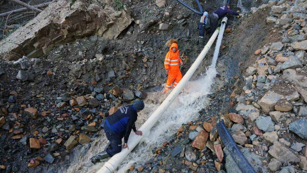 Toprak kaymasının zarar verdiği içme suyu hattına stratejik müdahale