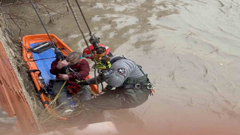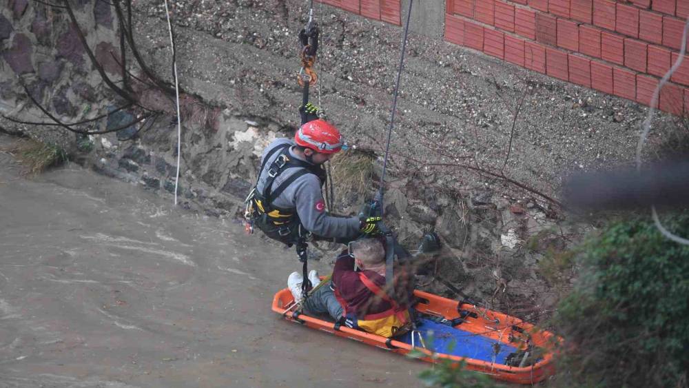 Yağmur suları yükseldi, çayda mahsur kalan vatandaşı itfaiye kurtardı