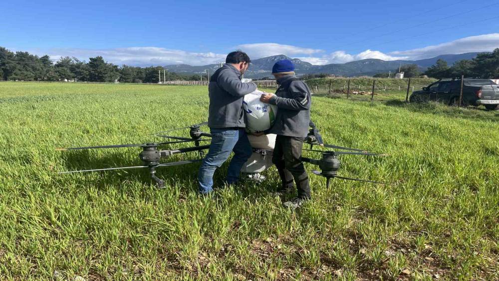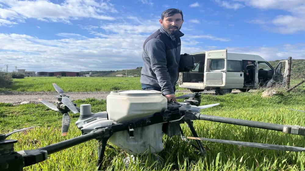 Yağmurdan çamura dönen tarlalarda çiftçi çözümü dronda buldu