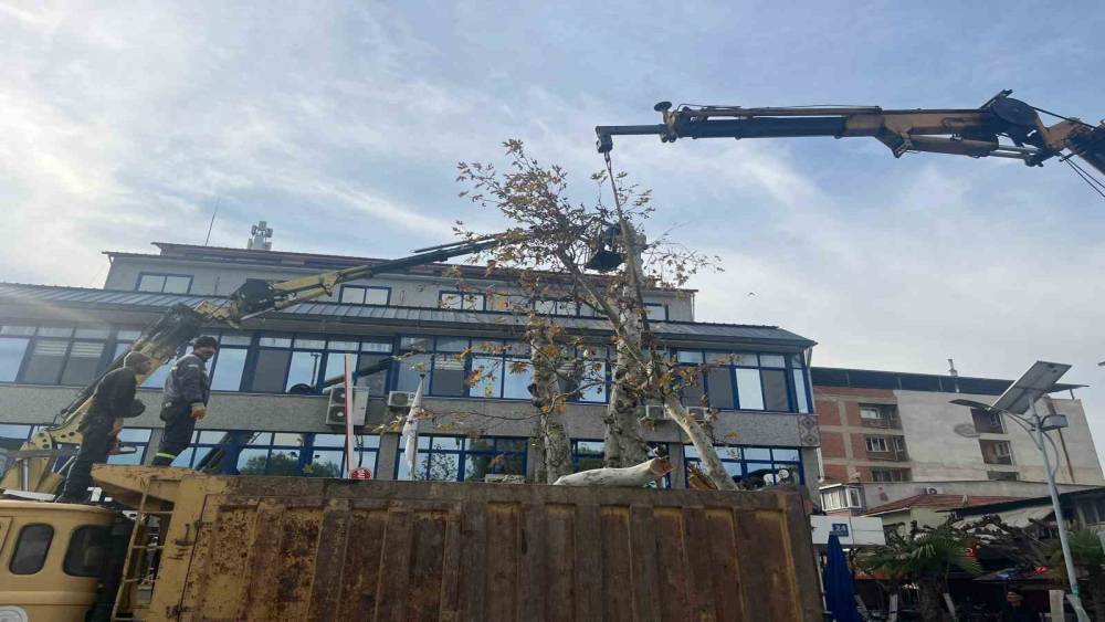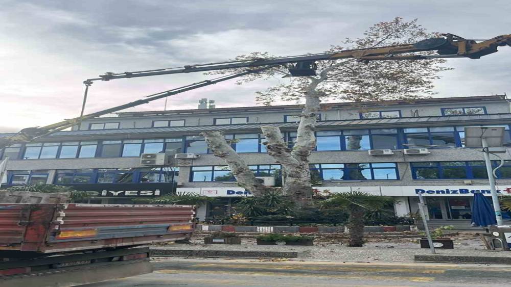 Yaşı 200’e yaklaşan çınar ağacı budandı
