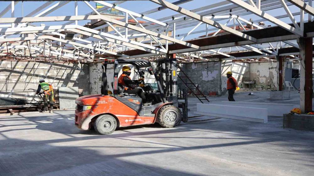 Devam eden çalışmalar kapsamında mevcut ve yeni çelik yapı elemanlarının tamamı boyanacak. Ayrıca yapı üzerine 40 milimetre kalınlığında PIR dolgulu sandviç panel montajı yapılarak pazaryerinin çatısı daha dayanıklı ve uzun ömürlü hale getirilecek. İş yerlerinde sürdürülen mevcut çelik yapı söküm çalışmalarının tamamlanmasının ardından duvar ve zemin tadilatlarına başlanacak.