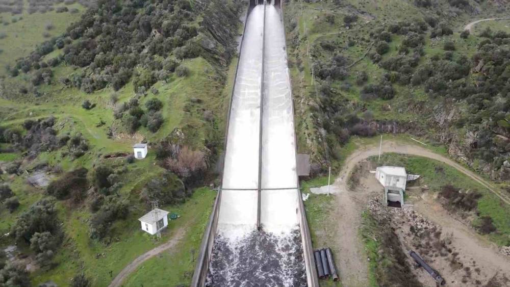 Aydın’ın Karpuzlu ilçesinde bulunan Yaylakavak Barajı son yağışlarla birlikte tam doluluğa ulaşırken, fazla suyun tahliyesi yapılıyor.