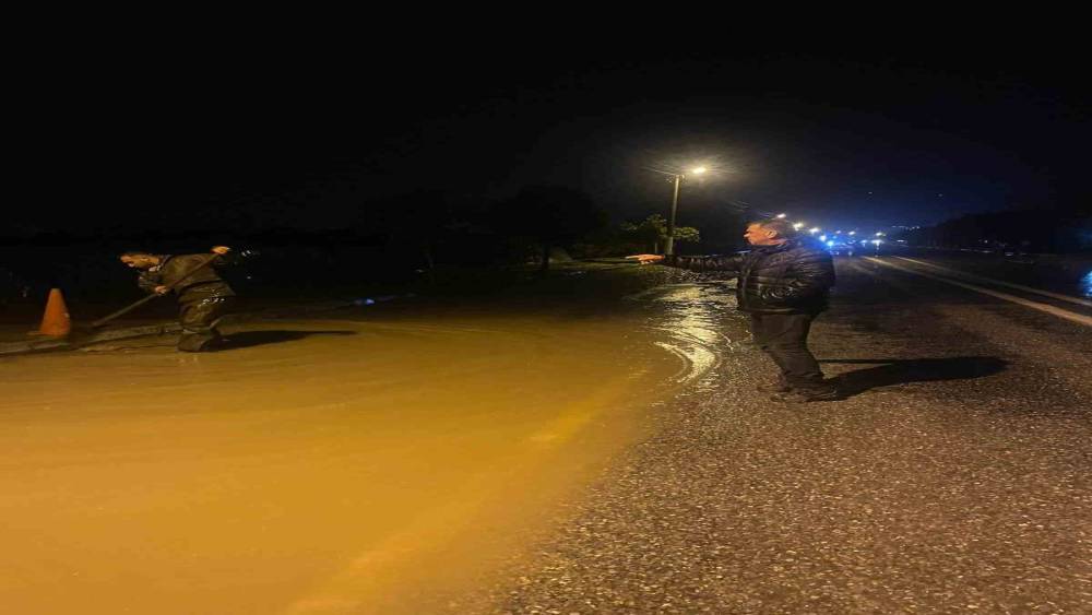 Aydın’ın Yenipazar ilçesinde sağanak yağış etkili oldu, bazı yollarda su birikintileri oluştu.
