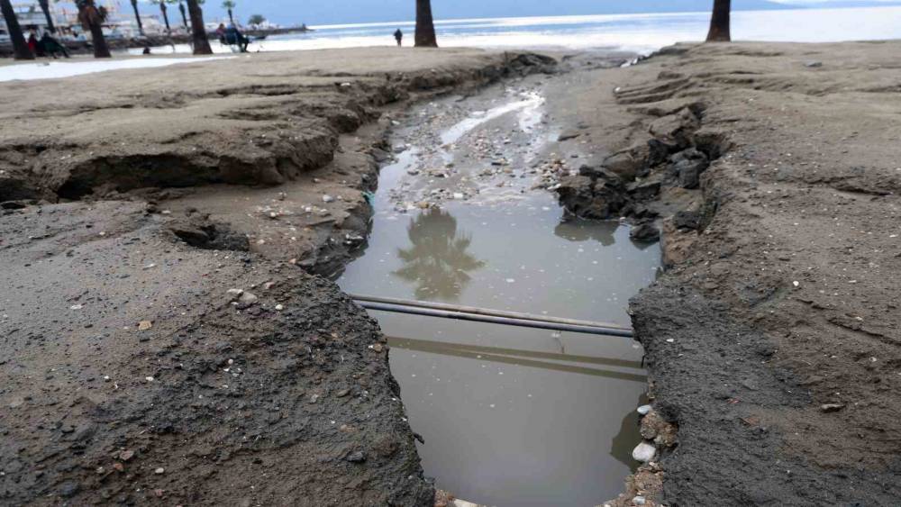 Yılın en kısa gününde deniz suyu çekildi, sağanak yağmur sahili tahrip etti
